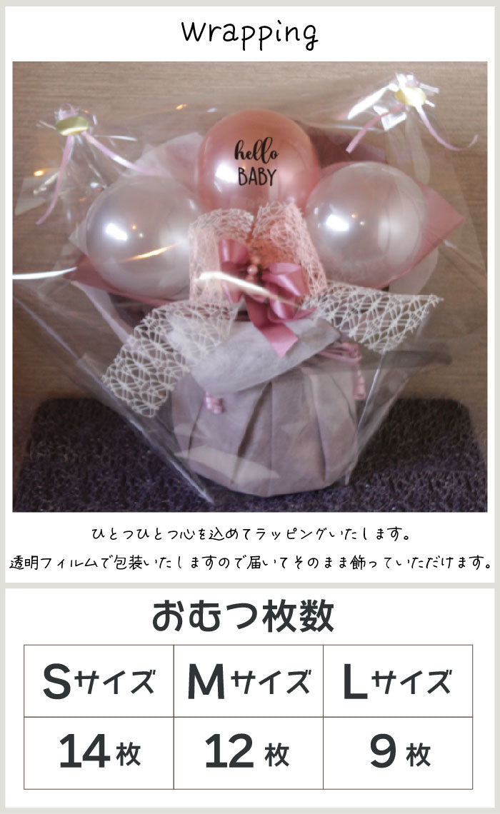 | おむつの種類 | パンパース・メリーズ・ムーニーマンの3メーカーからお選びいただけます。 種類はS/M/Lがございます。 ご注文時に備考欄におむつの種類とメーカーをご記入ください。 |