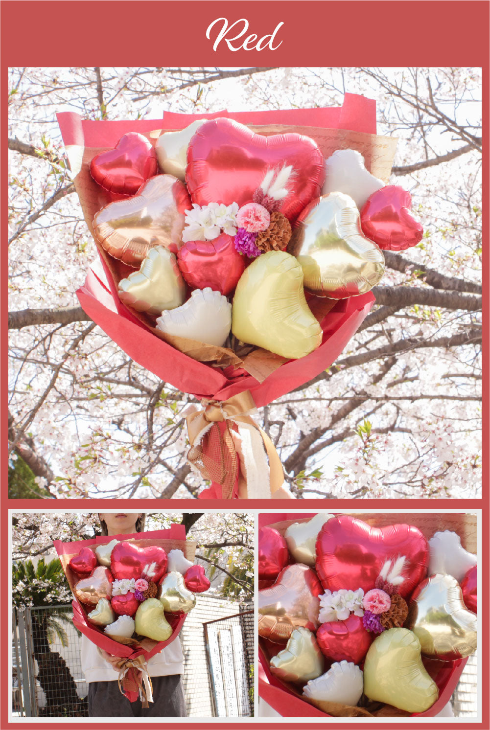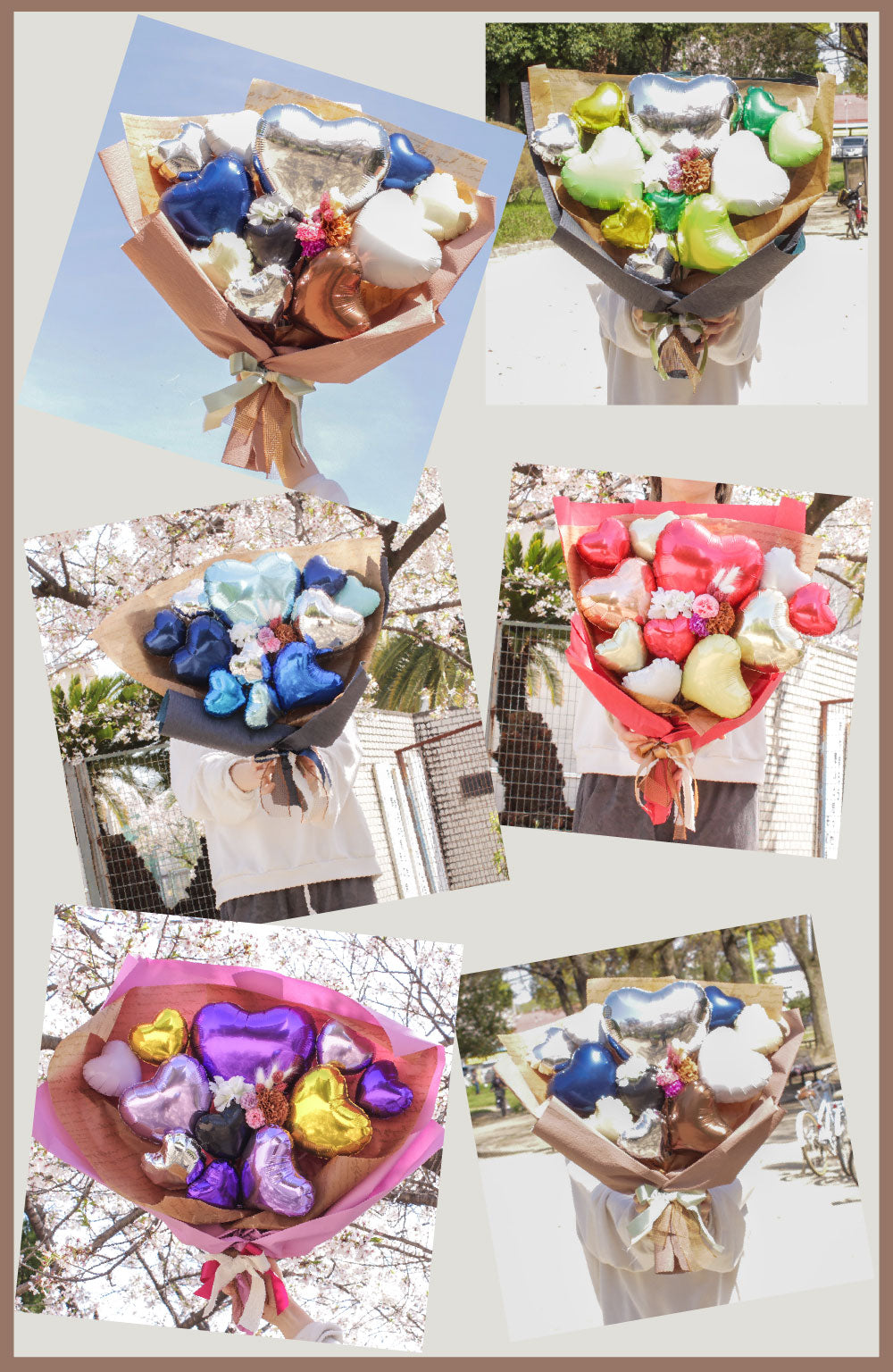 ・花や包装紙、バルーンの種類などは入荷状況によって、異なる可能性がございます。全体のイメージは変わらないようにお作りしております。