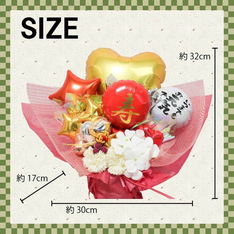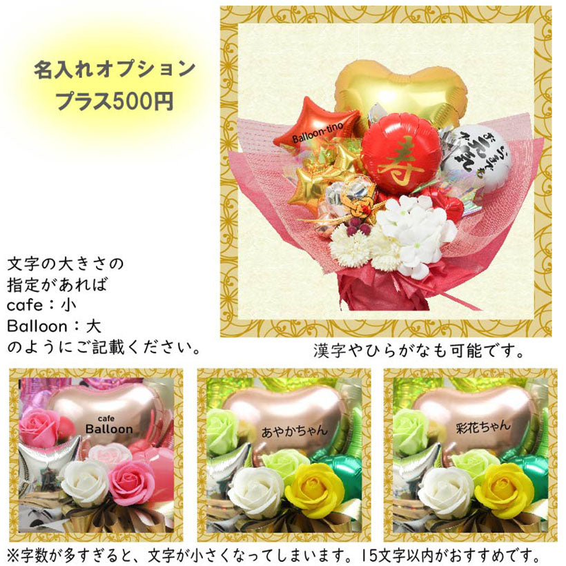 | 注意書き | ・お使いのモニターの発色具合によって、実際の物と異なる場合がございます。 ・花や包装紙、バルーンの種類などは入荷状況によって、異なる可能性がございます。全体のイメージは変わらないようにお作りしております。 |