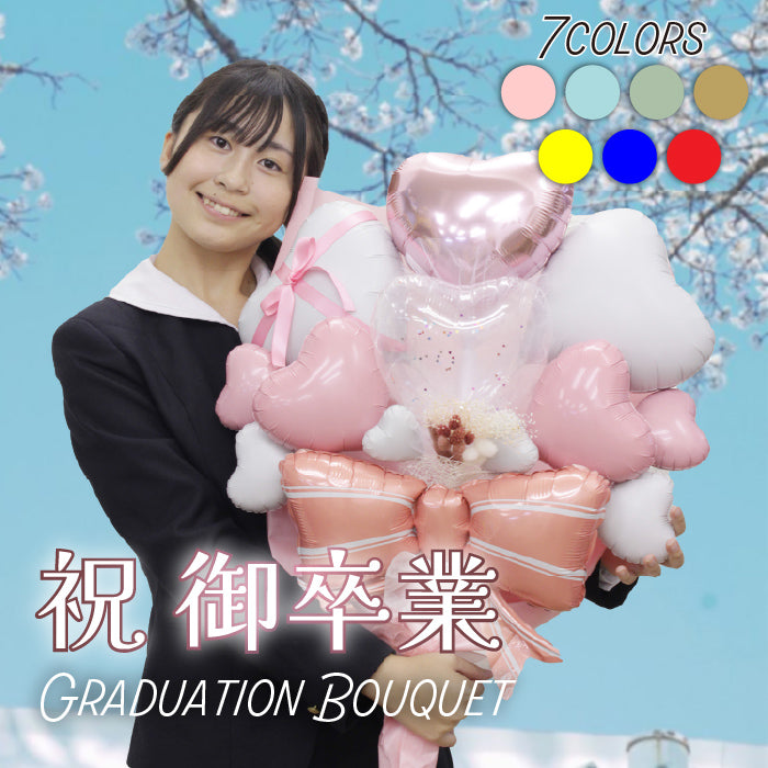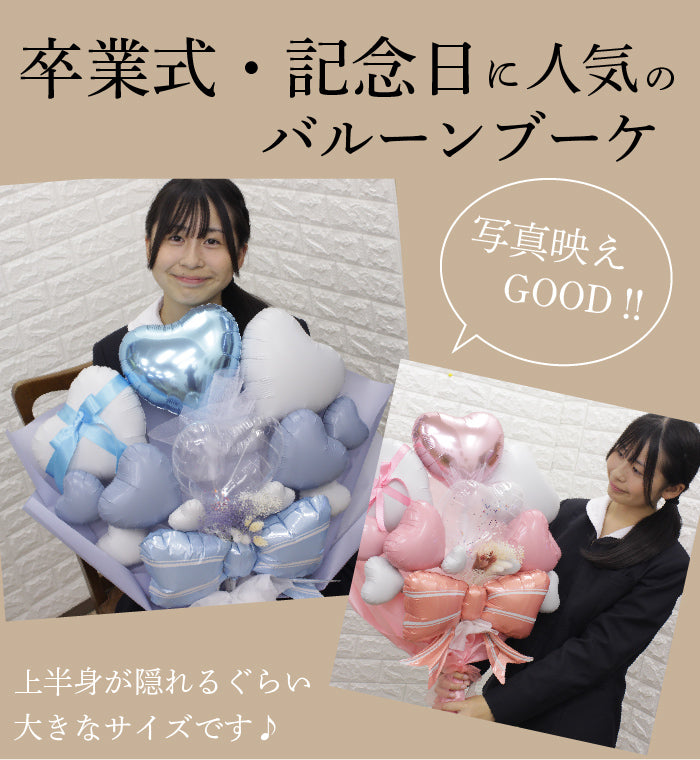卒業式を華やぐ大きなリボンのバルーンブーケ