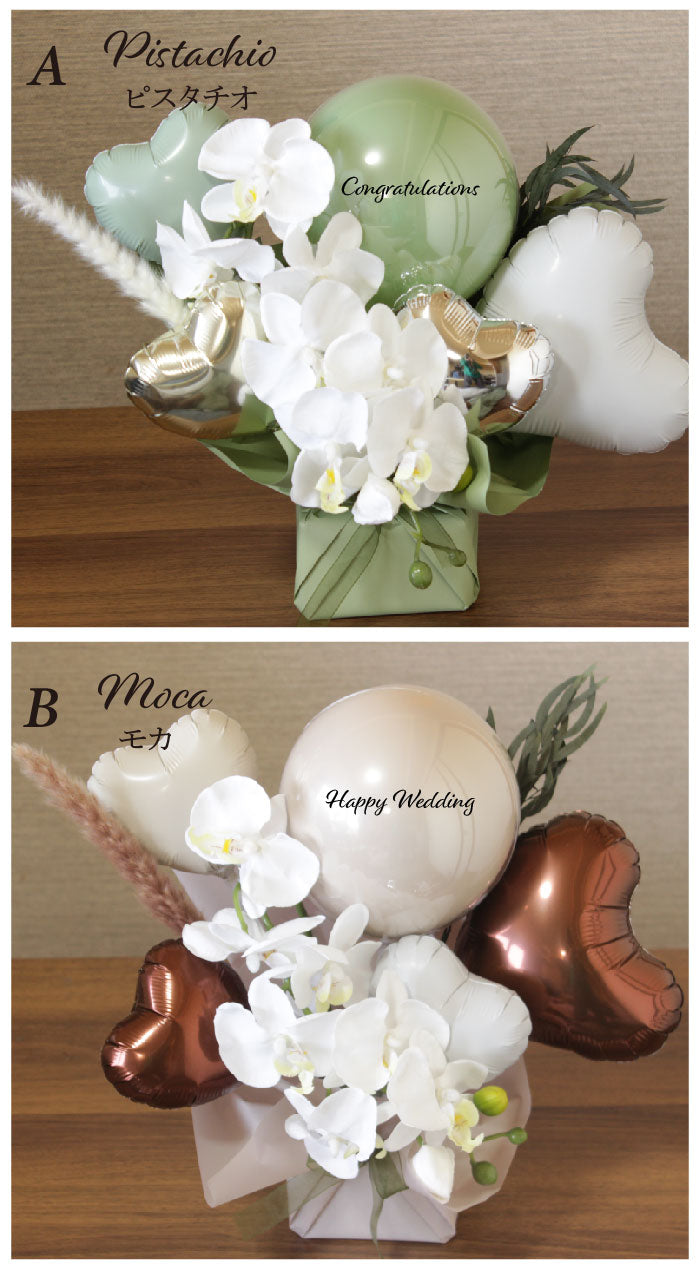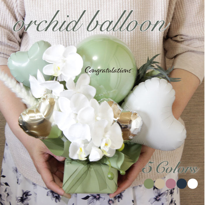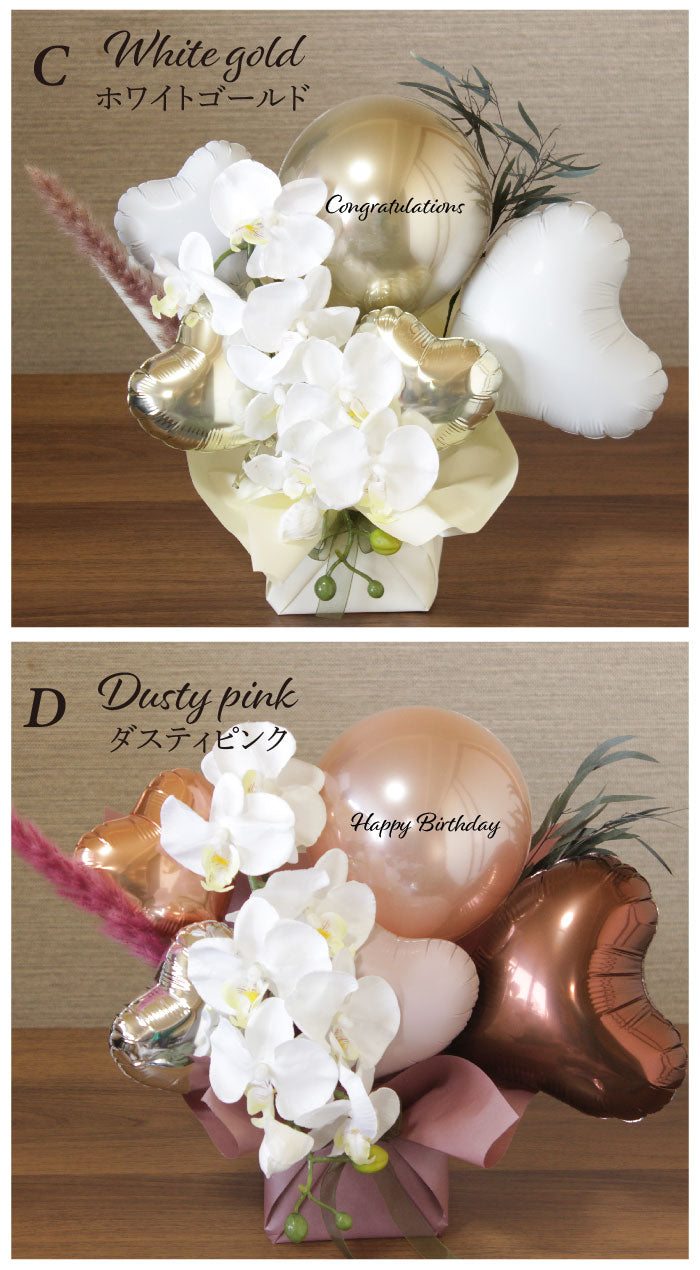 胡蝶蘭の造花とバルーンのニュアンスカラーアレンジメント nuanceran8031
