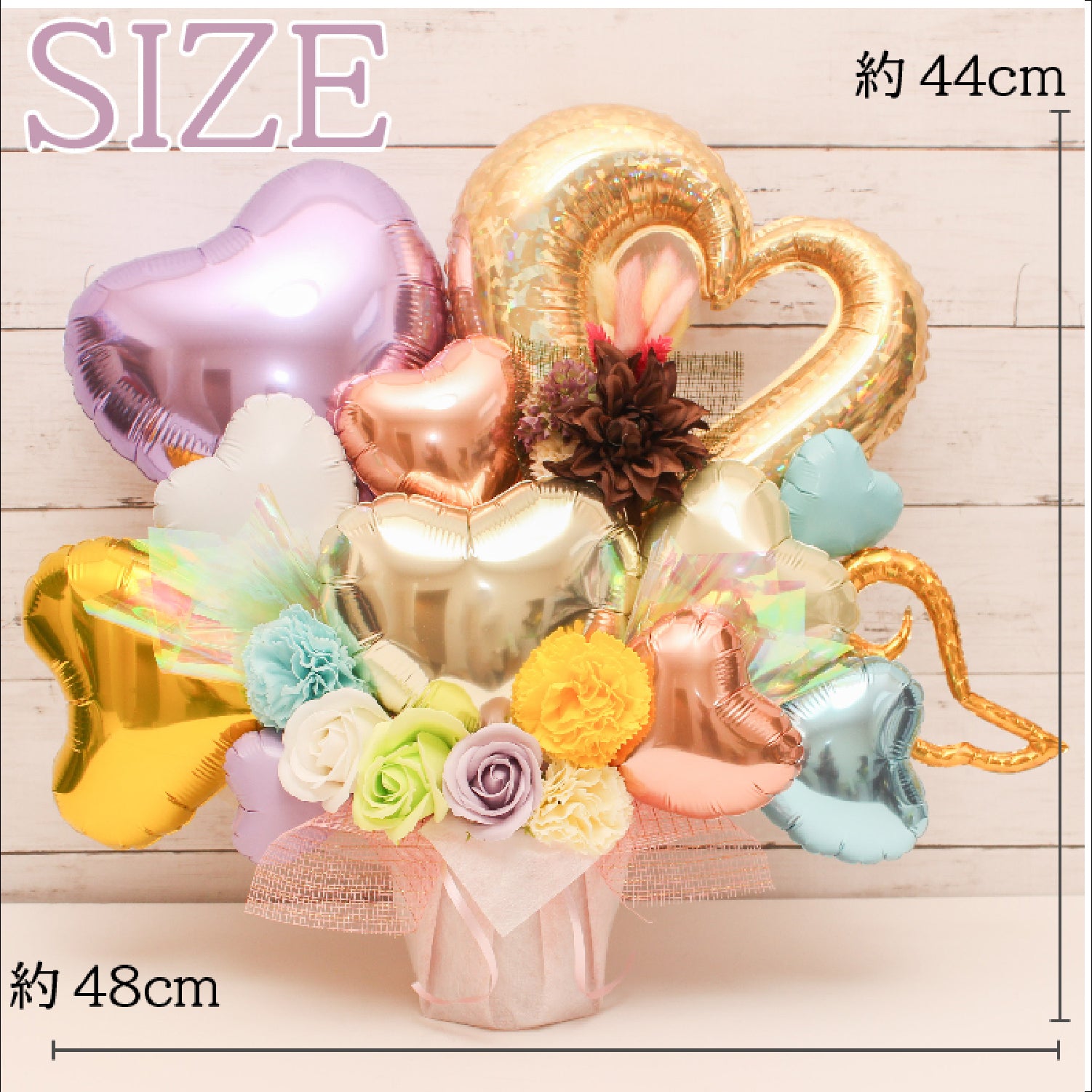 | 注意書き | ・お使いのモニターの発色具合によって、実際の物と異なる場合がございます。 ・花や包装紙、バルーンの種類などは入荷状況によって、異なる可能性がございます。全体のイメージは変わらないようにお作りしております。 |