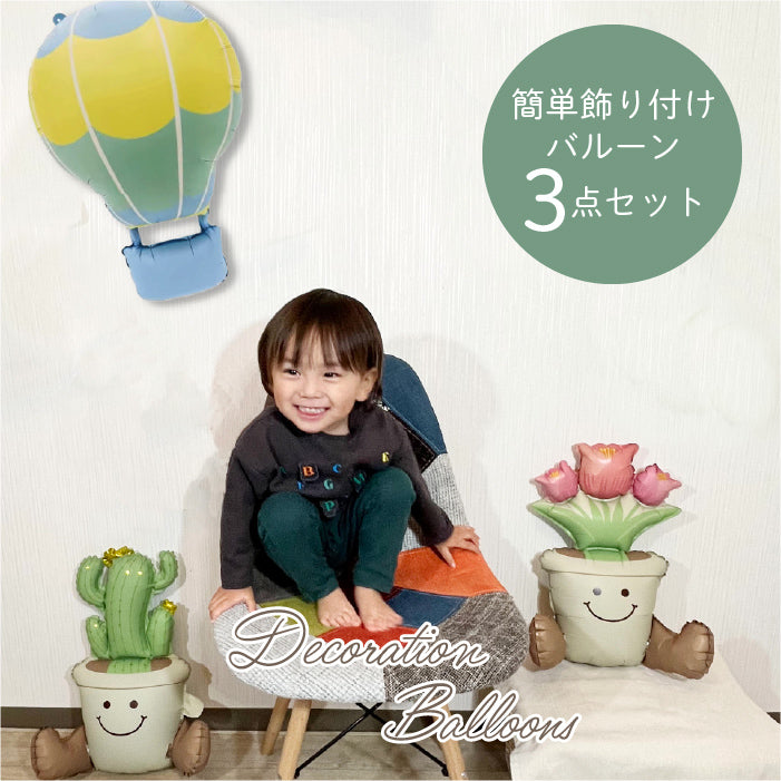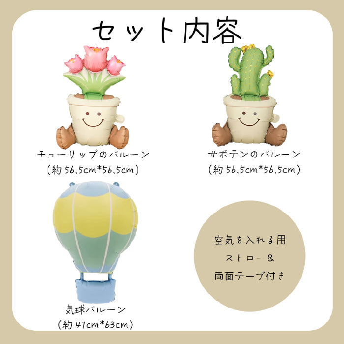 【お誕生日 ハーフバースデイ】おしゃれに可愛く部屋を飾り付けるバルーン サボテン・チューリップ・気球セット