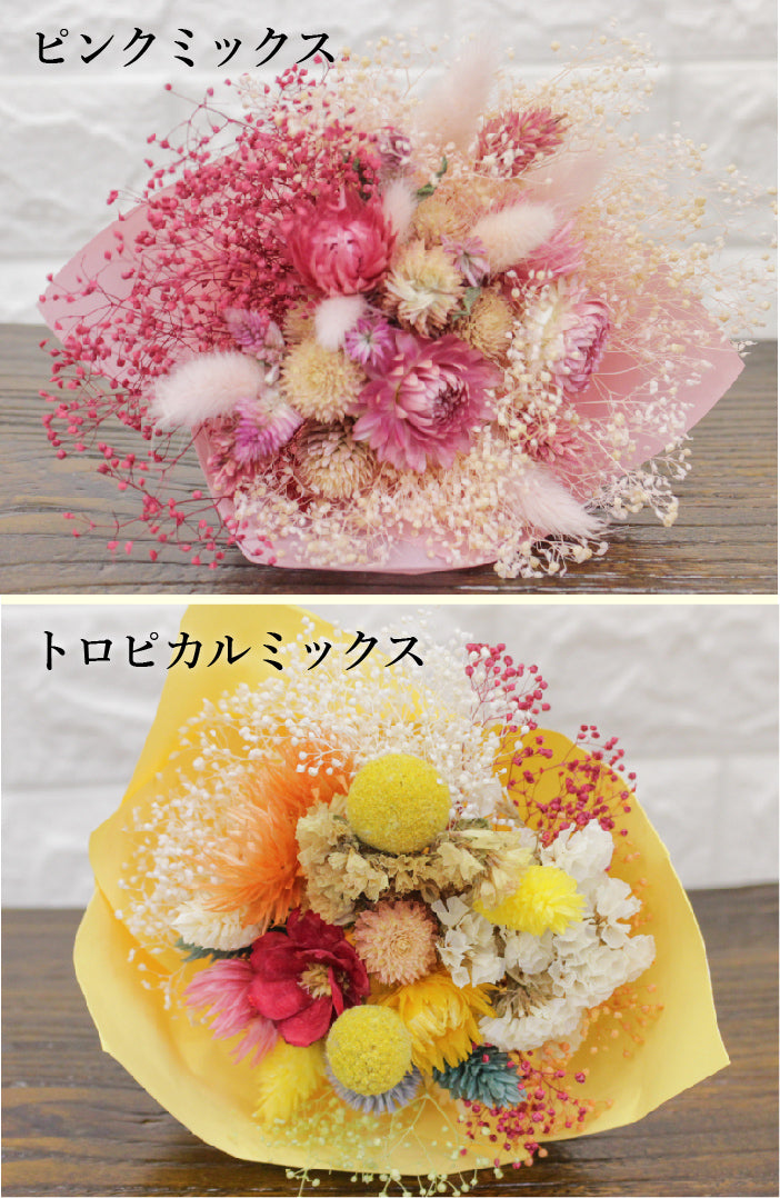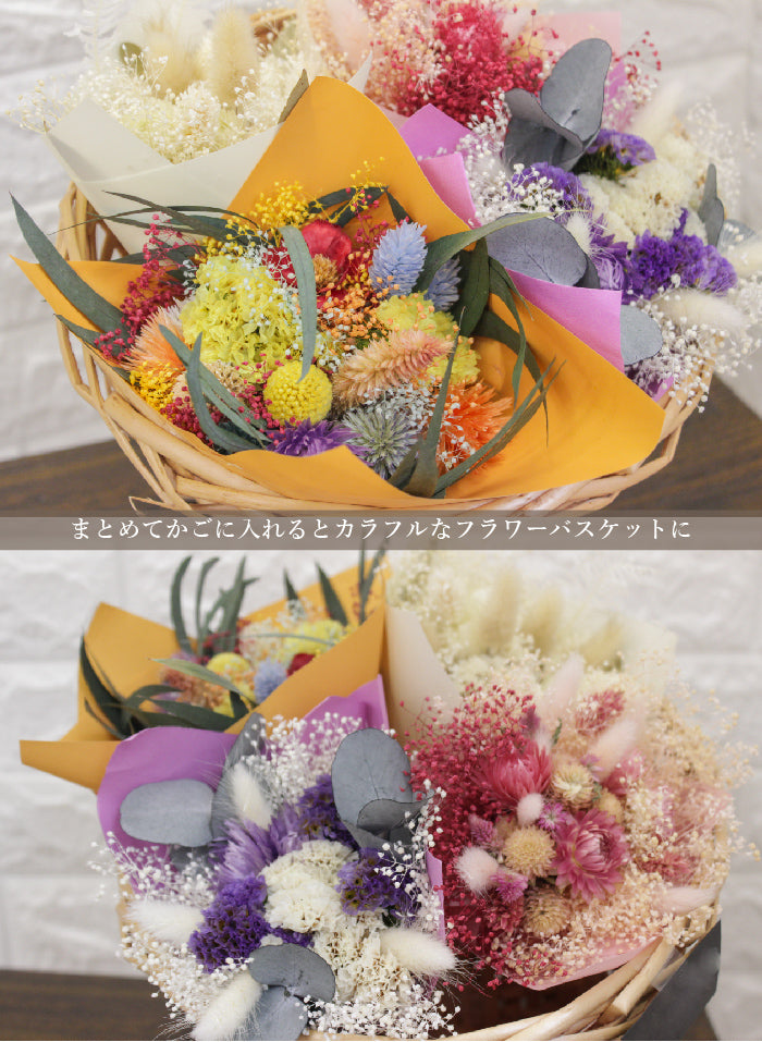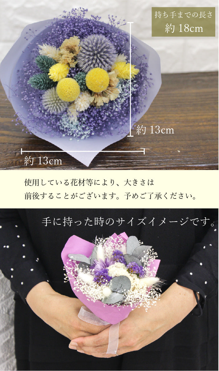 コロンと丸いシルエットがかわいいドライフラワーブーケ swag014